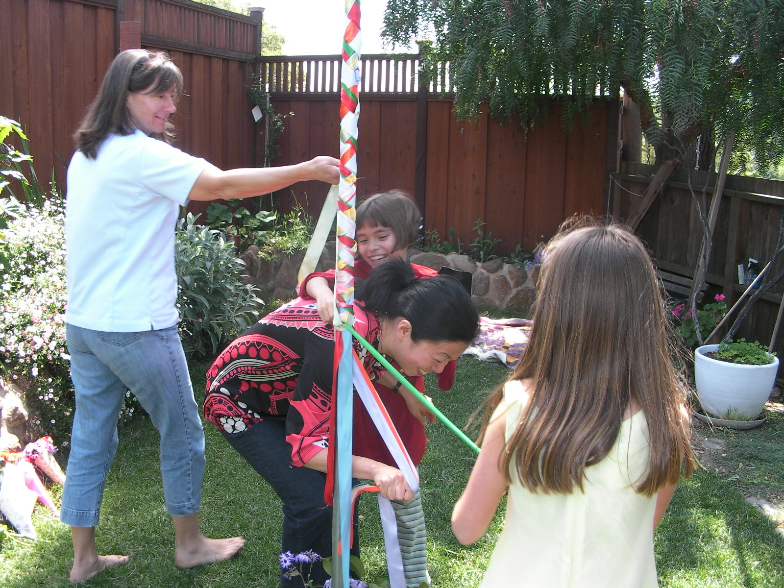 And the main event! We had a rousing time of May Pole dancing. Can you hear the flute?